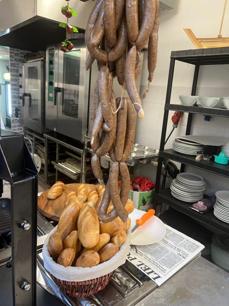 הנקניקייה האדומה והמפורסמת, מתובלת ביד רחבה בטעמים של שומר, כמון וחריפות נעימה.