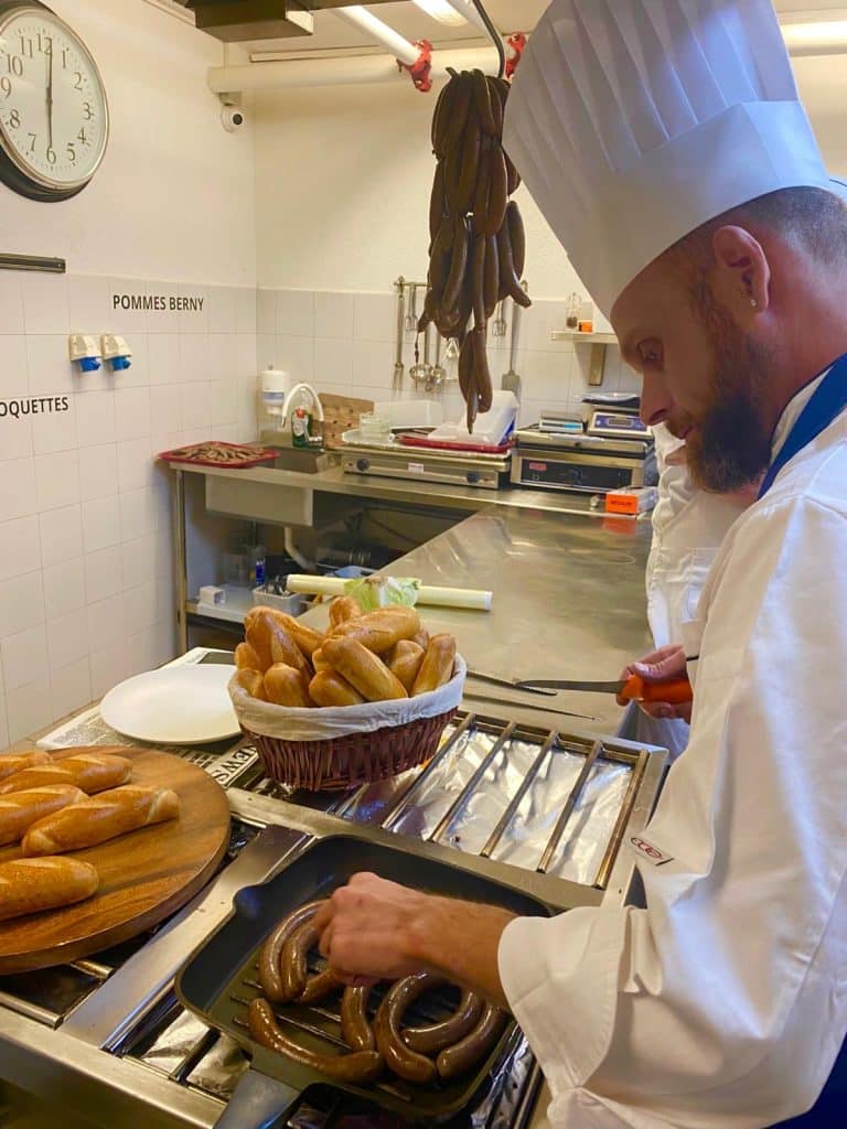 המלצת השף: מומלץ לתת לנקניקיות לנוח במקרר לפחות לילה שלם לפני הצלייה לאיחוד טעמים מושלם.