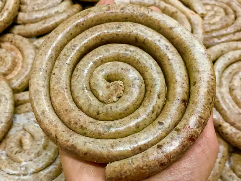נקניקיות עשירות בטעם עם מרקם ייחודי, המשלבות חלקי פנים ותבלינים ארומטיים.